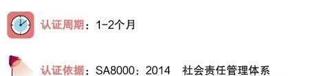 企業(yè)社會(huì)責(zé)任管理體系認(rèn)證以SA8000:2014標(biāo)準(zhǔn)為認(rèn)證依據(jù)。標(biāo)準(zhǔn)涉及領(lǐng)域包括童工、職業(yè)健康與安全、結(jié)社自由和集體談判自由、歧視、懲罰、工作時(shí)間、報(bào)酬及管理系統(tǒng),目的是保護(hù)勞動(dòng)環(huán)境和條件、勞工權(quán)利等,適用于各種行業(yè)、各種規(guī)模的組織。